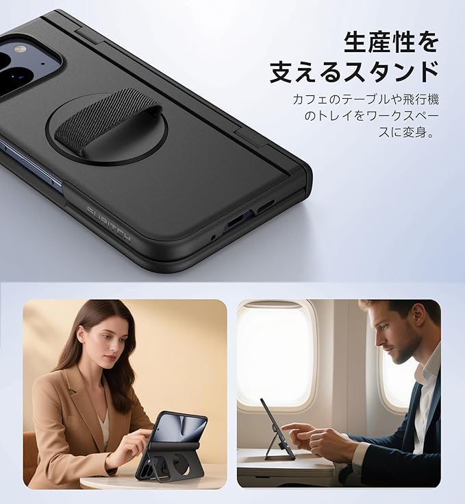 抜群の安定性:大型の内蔵スタンドで、Pixel 10 Pro Fold をワークステーションやミニシネマに変身させましょう。ビデオ通話、マルチタスク、ビンジウォッチングなど、どんなシーンでも安定した操作性で、いつでも生産性を維持したり、エンターテイメントを楽しんだりできます。