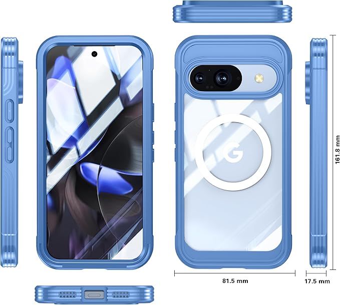 Google Pixel10 / Pixel 10 Pro ケース MagSafe対応 全面カバー 両面ケース ガラスフィルム付き 360度全面保護 ピクセル10 プロ カバー 耐衝撃 アウトドア ,薄ブルー