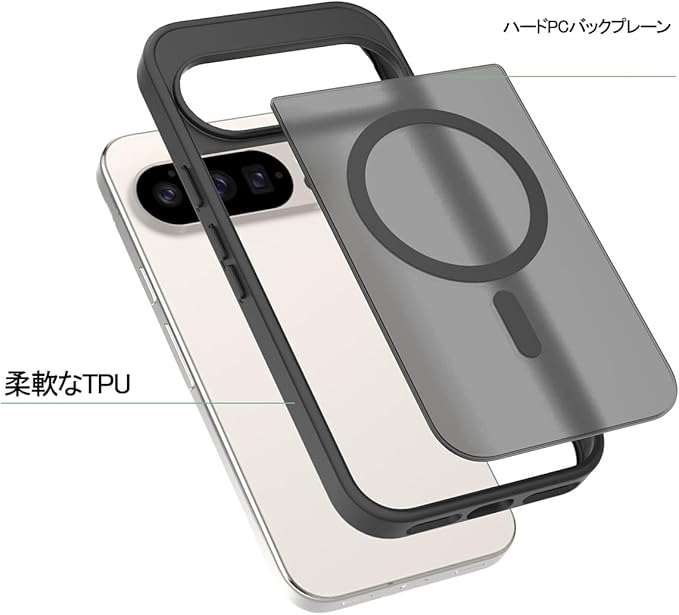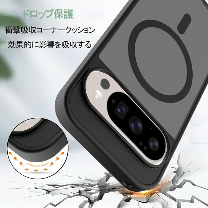 KPNS スマホケース 対応 Google Pixel 10/Pixel 10 Pro 用の ケース 耐衝撃 滑り止め 指紋防止 米軍MIL規格 マット仕上げ Magsafe 対応 ワイヤレス充電 携帯ケース (ブラック)