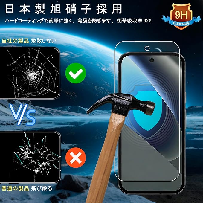 【飛散防止&気泡防止加工】安全・簡単に貼れるGoogle Pixel 10A フィルム、万が一の落下や衝撃によるガラス割れ時にも、飛散防止加工により破片が飛び散らず、安全に使用できる設計です。また、自己吸着タイプのガラスフィルムは位置を合わせて軽く置くだけでしっかり吸着し、気泡の発生を抑制。初めての方でも簡単に貼り付けでき、貼り直しも可能で失敗の心配がありません