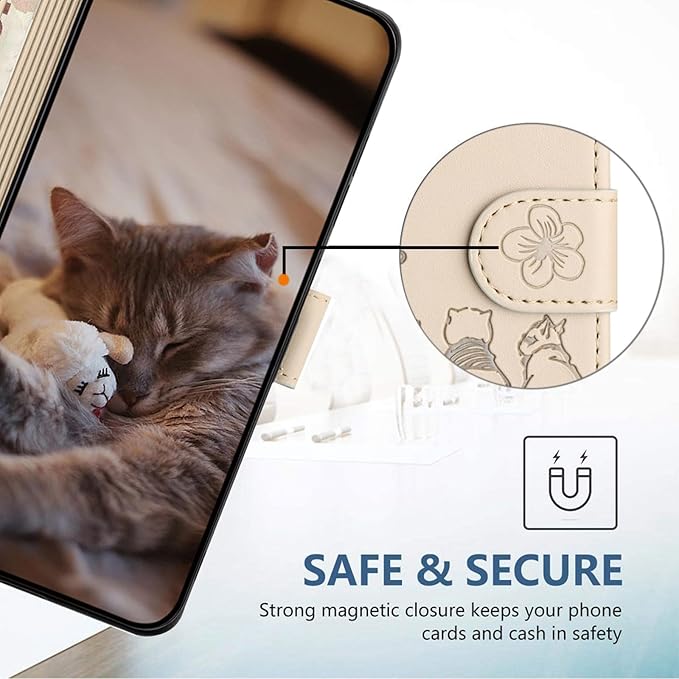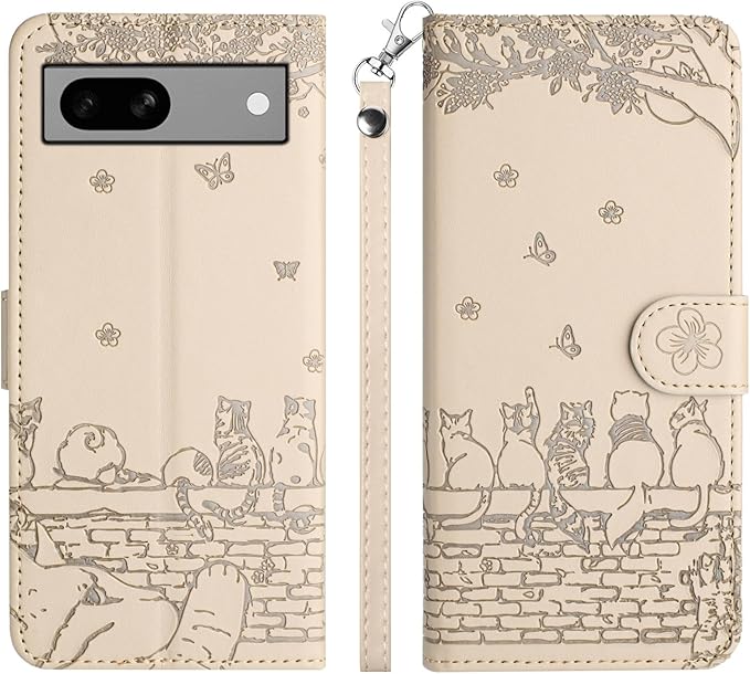 対応 Google Pixel 7A ケース 手帳型 可愛い 猫柄 グーグル ピクセル 7A 携帯カバー 蝶の花柄 スマホケース おしゃれ カード入れ 財布型 Pixel 7A カバー 動物柄 カード収納 スタンド機能 軽量 便利 内蔵マグネット式 ベージュ 純色シンプルデザイン - Beige