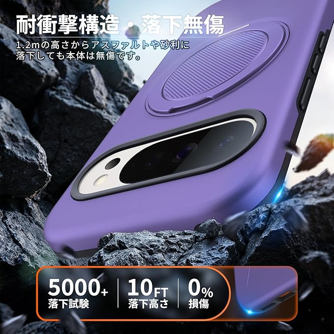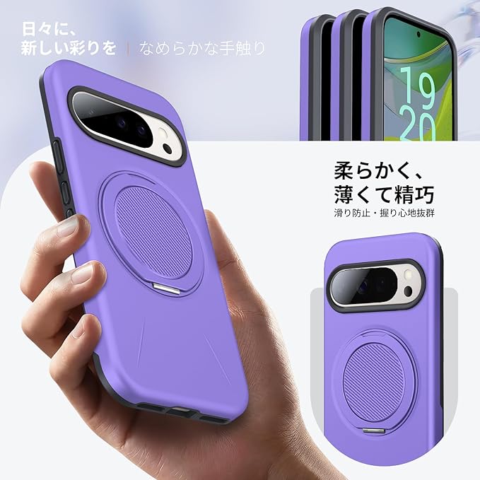 対応 Google Pixel 10 Pro XL 用 ケース magsafe対応 リング付き 耐衝撃 米軍MIL規格 リング マグネット搭載 ワイヤレス充電可能 多機能360度回転 指紋防止 黄変防止 車載ホルダー 紫 C99-pix10pxl-07