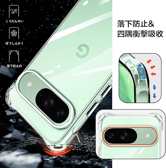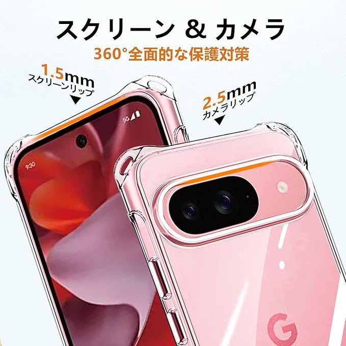 【高耐衝撃性・レンズと液晶を保護】カメラレンズの周りに段差をつけて擦り傷を防ぎます、平らな場所においても、液晶画面とカメラレンズに直接触れることがなく、ケース四隅のエアクッションデザインにより、ケースの四角を強化し、本体が落ちる場合に伝わる衝撃を吸収し、落下時の衝撃を最小限に抑えます、を全方位からしっかり守れます。