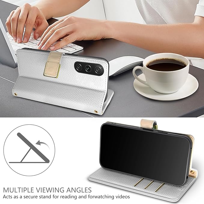 【上質な素材とスタンド機能】外部は上質なPU素材を採用しており、普通のレザーより、耐熱性と柔軟性を一層アップされ、肌のような手触り、夏でも手汗で変な匂いが出てきてません。インナーケースはソフトなTPU素材で、全面保護を与える同時に着脱しやすいです、スマホ本体への損傷の心配ありません。スタンド機能を搭載しており、お好きな角度を調整でき、両手が解放され、お気軽に読書や動画視聴を楽しむことができます。