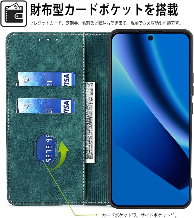 For Google Pixel 10A 対応 ケース 手帳型 スマホケース スマホカバー 携帯カバー 手帳型 PUレザー 柔軟 TPU 肌触り良い 耐摩擦 財布型 レトロなスタイル カバー カード収納ケース 内蔵マグネット 耐衝撃 スタンド機能 おしゃれ 全面保護 手帳型 ケース (グリーン)