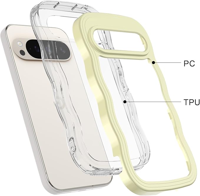 Google Pixel 10/10 Pro/9/9 Pro ケース クリア ウェーブ ピクセル 10/10 Pro/9/9 Pro TPU波状フレーム うねうね グーグル ピクセル10/10 Pro/9/9 Pro 滑り止め スマホケースウェーブ デザイン 手にフィット 韓国 可愛い 女性用 女子向け 透明 ケースカバー 人気 落下防止 耐衝撃 ストラップホール付き グーグルピクセル10/10 Pro/9/9 Pro なみなみ ワイヤレス充電対応(Google Pixel 10/10 Pro/9/9 Pro-イエロー)