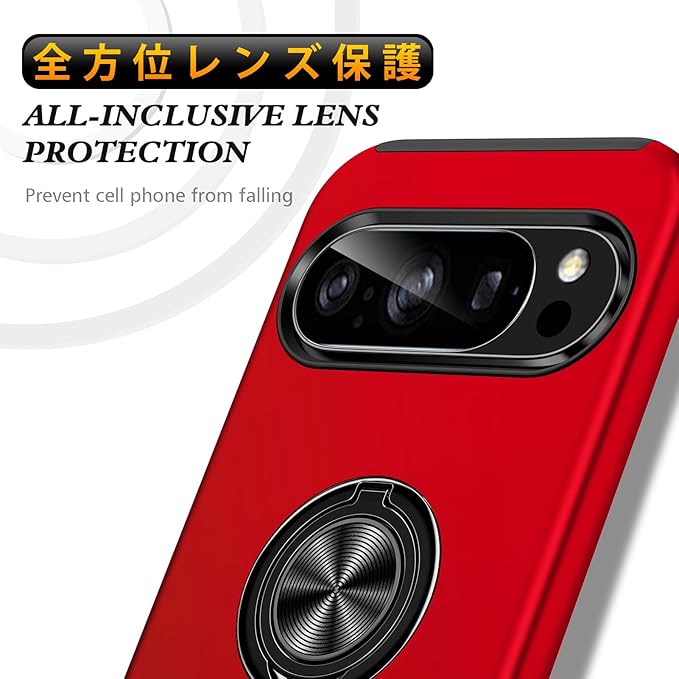 対応 Google Pixel 10 / Pixel 10 Pro 用の ケース リング 耐衝撃 米軍MIL規格取得 TPU+PC 衝撃吸収 カバー レンズ保護 リングつき 指紋防止 360 回転 車載ホルダー対応 スタンド機能 防塵 薄型 落下防止 擦り傷防止 10/10 Pro 携帯電話カバー 赤C85-pix10-02