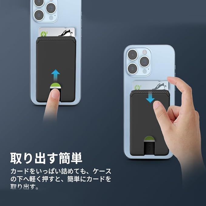 【カードホルダー】シリコーンゲル製のバックカードホルダー付き。日常使いに適しています。クレジットICカード、IDカード、SUICA、 PASMO、名刺、ポイントカード等を3枚まで収納することができます。