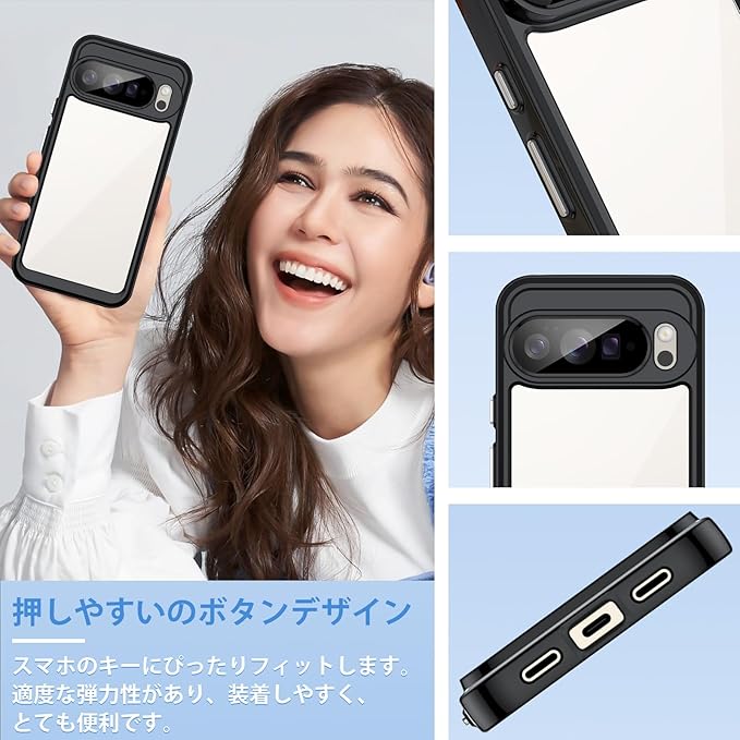 KeeFos ケース Google Pixel 10 Pro XL 5G 対応 TPU+PC素材 保護ケース 耐衝撃 スマホケース 半透明 カバー 全面保護 黄ばみ防止 指紋防止 傷つけ防止 米軍MIL規格 軽量 薄型 保護カバー グーグルピクセル 10 Pro XL 5G 用 (ブラック)