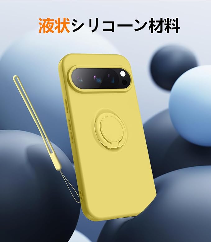 対応 Google Pixel 10 用 ケース リング Pixel 10 Pro ケース ストラップ付き ストラップホール付き ソフト シリコン おしゃれ 耐衝撃 軽量 薄型 スタンド機能 車載ホルダー対応 ピクセル 10 プロ 携帯カバー 黄 R-YTDS-GP10P-05