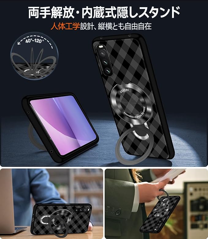 【リング付き・多機能スタンド】多機能スタンドとリング一体型の斬新なデザインです。縦置きでも横置きでも安定して支えられ、40 ~ 120 の間で多角度自由に調整できます。視聴に楽しみ、首や肩周りリラックス、指と腕の疲れ解消し,両手解放!