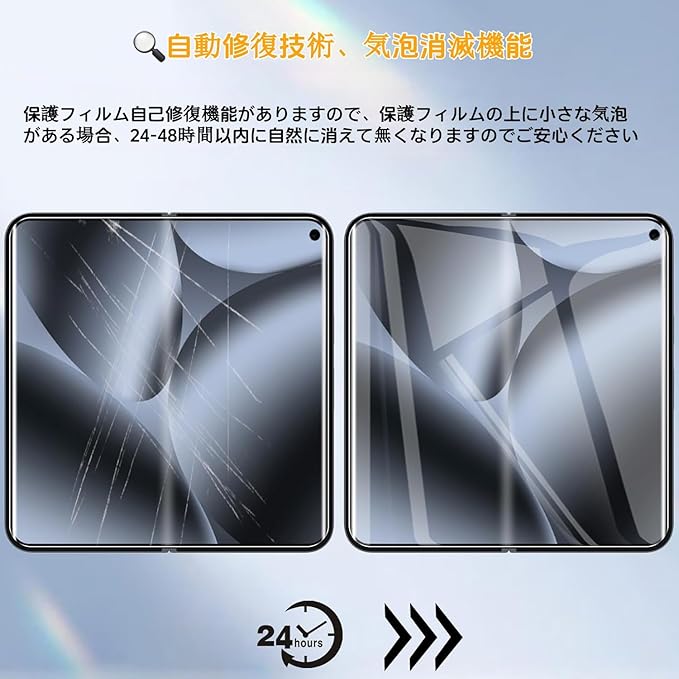 [簡単貼り付け、脱落しにくい]Googleピクセル10pro Fold保護シートは4層の貼り付けサポート設計。説明書をよくお読みいただき、手順に従って貼っていただきますと、簡単に貼ることができます。弊社は品質がより良いフィルムを採用して、貼り付けた24時間以後、スマホ画面にぴったりと貼って、長く使ってもはがれにくい。保護フィルムの上に小さな気泡がある場合、自己修復機能がありますので、時間が経つとともに自然に抜けます。エッジの部分はカードで気泡を無理に追い出さないで放置してください。