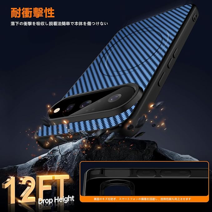 対応 Google Pixel 10 用 ケース 炭素繊維テクスチャ 薄型 軽量 耐衝撃 PC 素材 ワイヤレス充電対応 おしゃれ 指紋防止 防塵 傷防止 人気 ピクセル 10 用 携帯便利カバー ライトブルー (ライト青) MD-TXCX-09-05