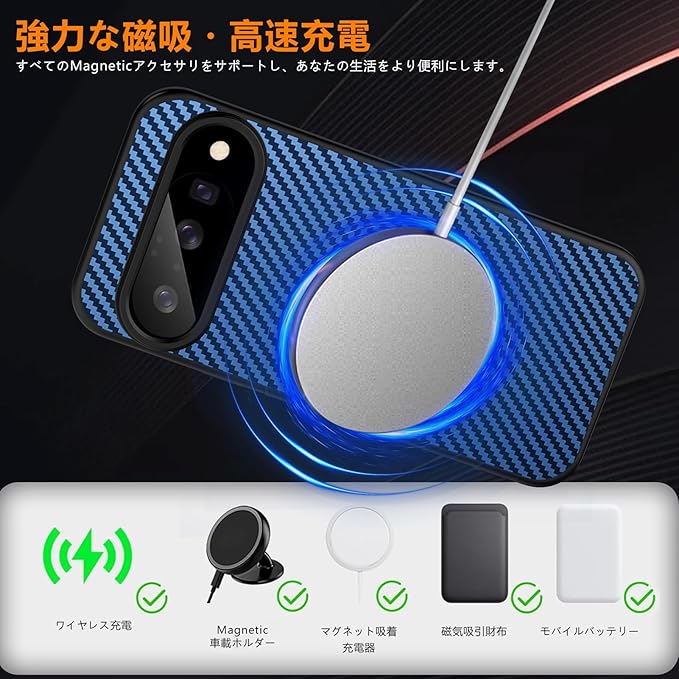 【鉄片磁気吸引コイルの加持】鉄片磁気吸引コイルを内蔵し、各種磁気吸引部品と完璧に適合でき、車載磁気吸引スタンドであれ、磁気吸引無線充電器であれ、簡単に使用でき、外出と充電に極めて便利をもたらす(当店ではケースのみ販売しており、磁気吸引部品はございません)
