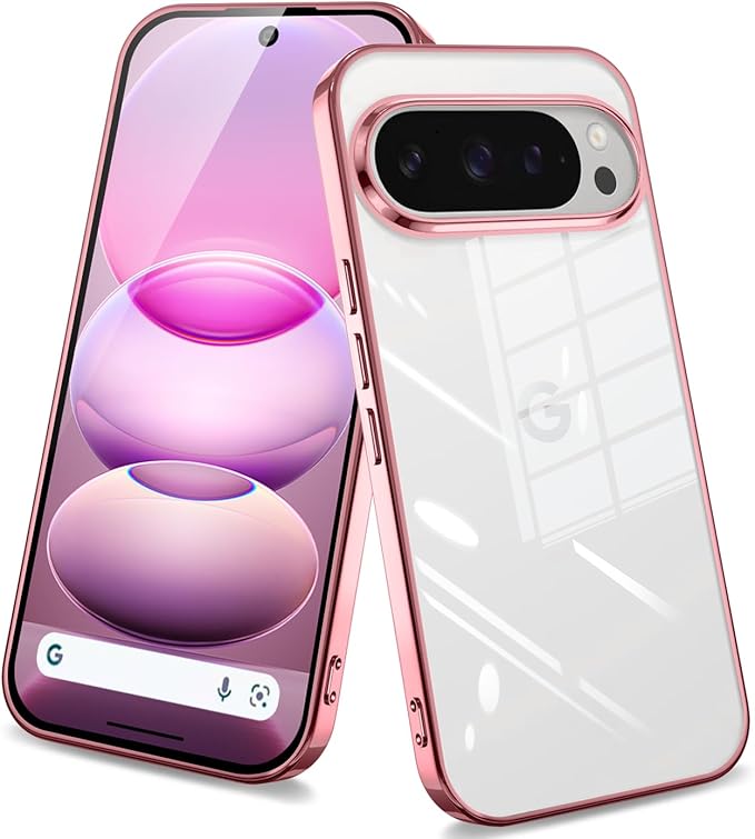 Google Pixel 10 / Pixel 10 Pro ケース クリア ソフトケース ドイツTPU素材採用 100MPa射出成形 真空電鍍フレーム 耐衝撃 黄ばみ防止 レンズ保護 薄型 軽量 カード・写真を挟める DIYデコ 通勤・デート・旅行・オフィス向け(ローズゴールド)
