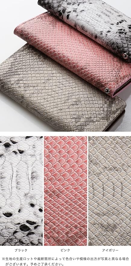 外側カバーはパイソン(大蛇柄)のPUレザー、内側カードポケットをフルグレインレザーで製作したハイブリッド(PUと本革を一体化させた)手帳型スマホケースです。傷や汚れに強いのが特徴です。ベルトが付いていないので片手でラクに開閉でき、マグネット不使用のため磁気カード等の影響も心配ありません。前面カバーは使用しているうちに馴染み、次第に閉じてくるようになります。