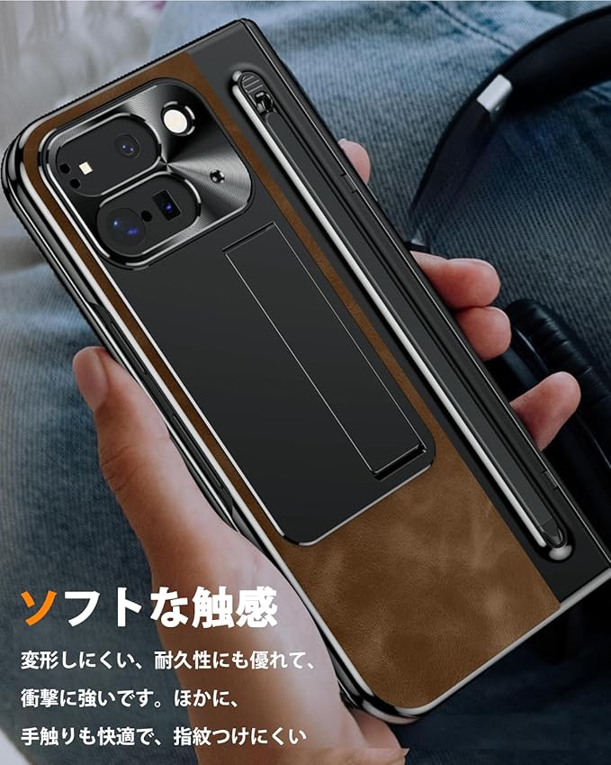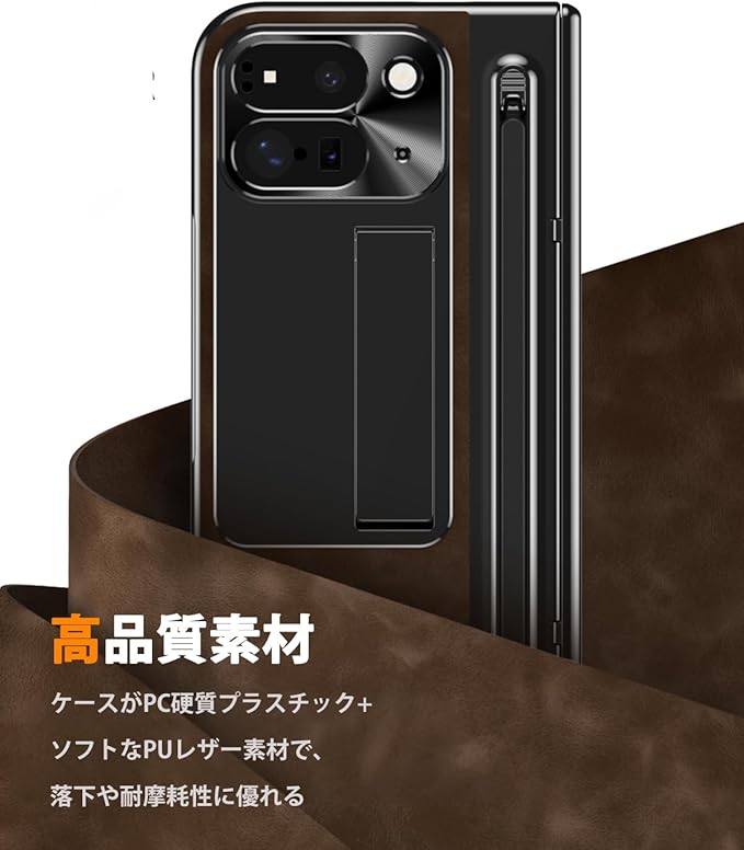 NINKI コンパチブル Google Pixel 10 Pro Fold 交換用ケース タッチペン付き ペンスロット ヒンジ保護 キックスタンド内蔵 折り畳み式 PC+レザー製 スクリーンフィルム一体型 スタンド機能 スクラッチ防止 グーグル ピクセル 10プロ フォールド 5G 用カバー(ダークブラウン)