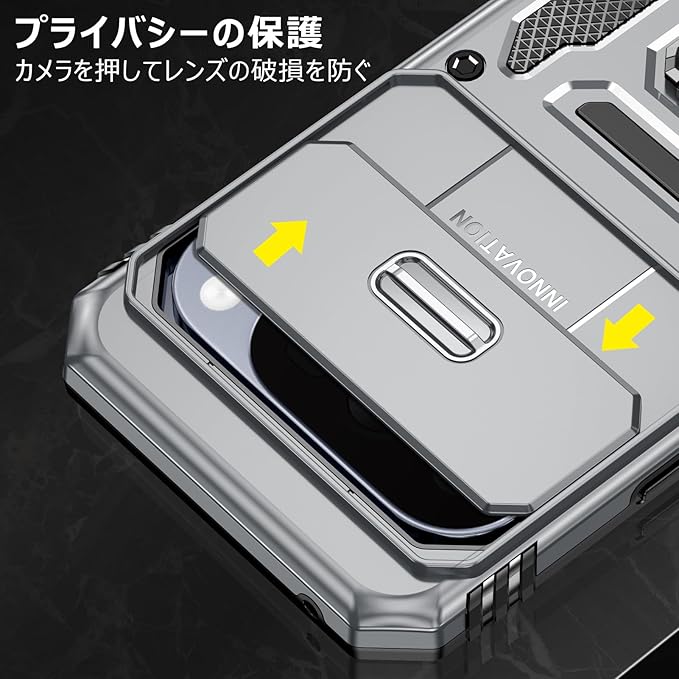 PNEWQNE 対応Google Pixel 10 Pro XL 用のケース リング付き 衝撃吸収 耐衝撃 スタンド機能 米軍MIL規格 グーグル ピクセル10 pro xl 用のケース 全面保護 360 回転 滑り落ちにくい 人気 おしゃれ 携帯カバー グレー WY100-36
