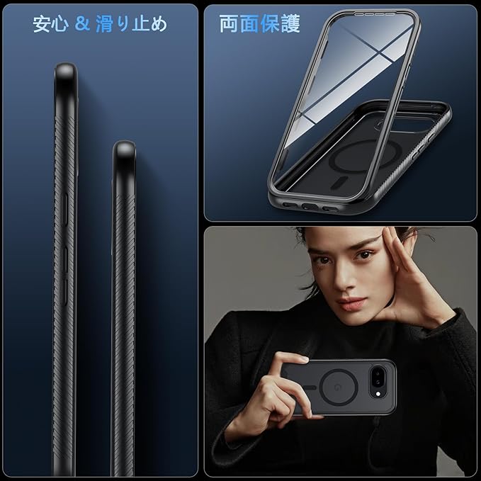 Fin2feel For Google Pixel 10a ケース【MagSafe対応】両面カバー マット半透明 黄ばみなし 指紋防止 耐衝撃 滑り止め グーグルピクセル10a ワイヤレス充電 ぐーくるぴくせる10a カバー6.3インチ(ブラック)