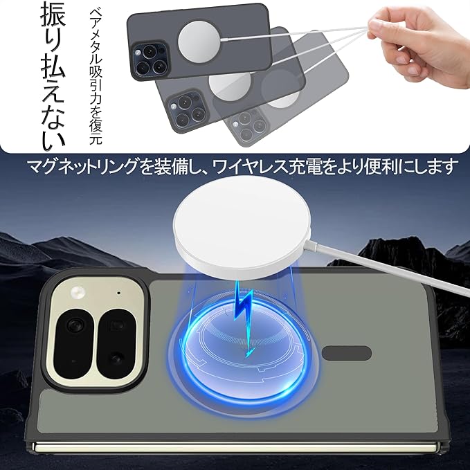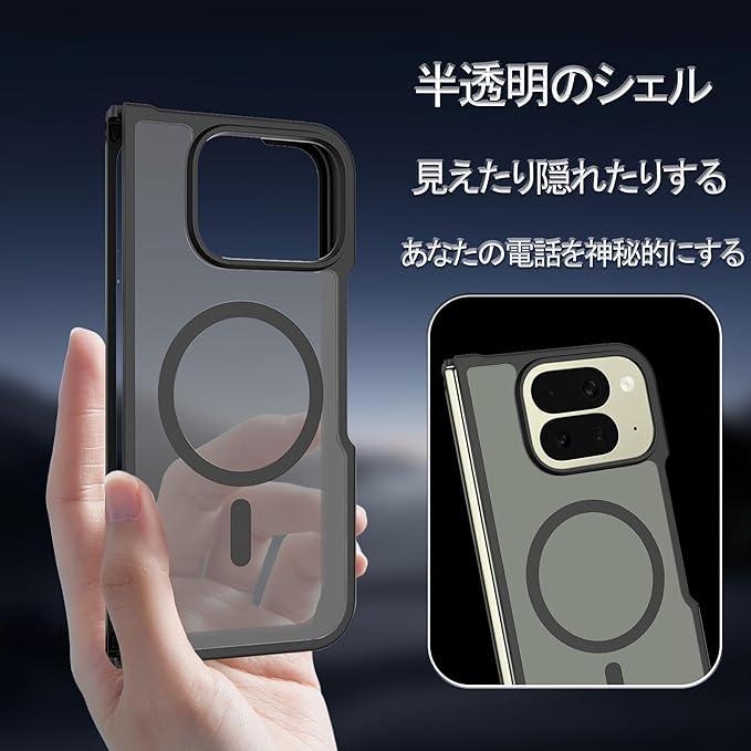 KPNS 対応 Google Pixel 10 Pro Fold 用 スマホケース 米軍MIL規格 半透明のマット背面 肌触りも良い 全面保護 衝撃防止 耐久性 ワイヤレス充電 指紋防止 黄ばみなし 保護カバー(マットブラック)