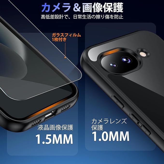 gogorelax for Google pixel 10a 用 ケース ブラック 米軍MIL規格 耐衝撃 ガラスフィルム付き グーグルピクセル10a 用 ケース 耐黄変 ピクセル10a 用 カバー googleピクセル10a 用 スマホカバー ワイヤレス充電対応 透明 ストラップホール付き