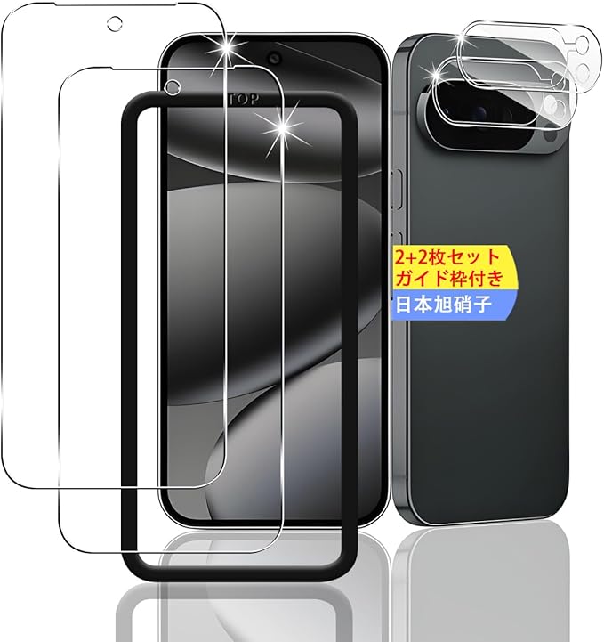 【2+2枚セット ガイド枠付き】 対応 Google Pixel 10 Pro ガラスフィルム スマホ 保護フィルム (2枚) + 用 ピクセル10 Pro レンズ保護フィルム (2枚) 【日本製素材旭硝子製】 用 Pixel 10 Pro フィルム 強化ガラスフィルム 全面吸着 高透過率、硬度9H、3D Touch対応、飛散防止、指紋・汚れ防止、気泡ゼロ、ラウンドエッジ加工【FAMROLLS正規品】