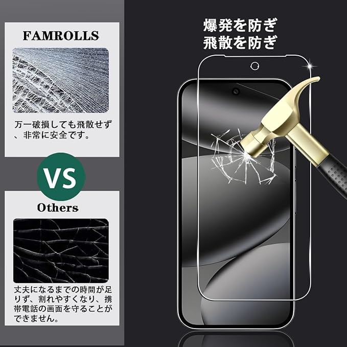 【✔対応機種】 Google Pixel 10 Pro 専用。素材に日本製の旭硝子を採用。【四枚セット】 2枚 用 Pixel 10 Pro 強化ガラスフィルム+ 2枚カメラ保護フィルム。【✔FAMROLLS正規品】スマホの周辺アクセサリーを長年手掛けるFAMROLLSメーカーの人気スマホガラスフィルムです。安心してご注文ください。