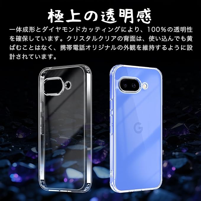 【対応機種】Google Pixel 10a ケース に適応しています。他のデバイスには対応しておりませんので、ご注文の際はご注意ください。ケース驚きほどの透明感、美しさをしっかりキープ、Phone本体のカラーを活かせて。