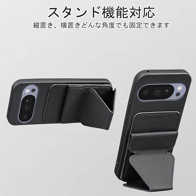 Cafma 対応 GOOGLE PIXEL 10 ケース 背面 カードケース グーグル ピクセル10 pro スマホスタンド カード入れ グリップで片手操作が便利 落下防止 ICカード収納 安定のスタンド機能 スマホケース 携帯 カバー 薄い 携帯 ケース(ブラック)グーグル PIXEL10 Pro/Pixel10 Black