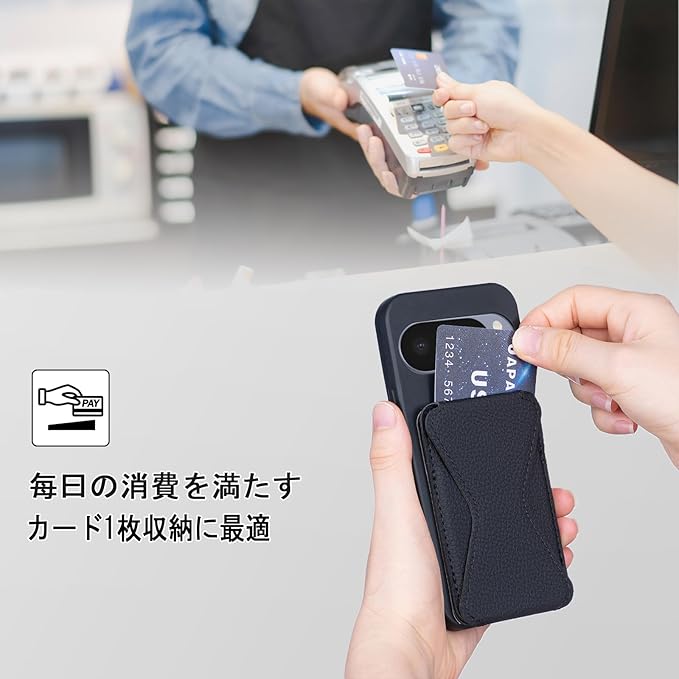 【財布型&収納】粘着型 貼り付け スマホ背面スタンド ステルス式カードスロットは1枚のカードを安全に保管することができます(クレジットカード/地下鉄カード/身分証明書/名刺)
