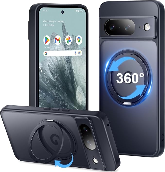 【360 回転スタンド】Google Pixel 7A ケースMagSafe対応 グーグル ピクセル7A ケース マグネット搭載 スタンド機能360 回転可能【横縦両立/角度自由調整】 カバー 純正 薄型 マット感 指紋防止 耐衝撃 落下防止 車載ホルダー対応 ワイヤレス充電 全面保護 Google Pixel 7A TPUケース(ピクセル7Aブラック)