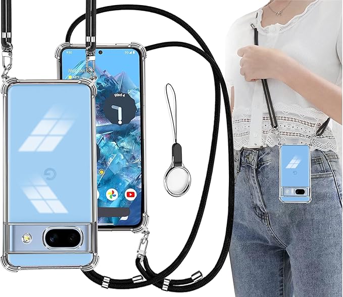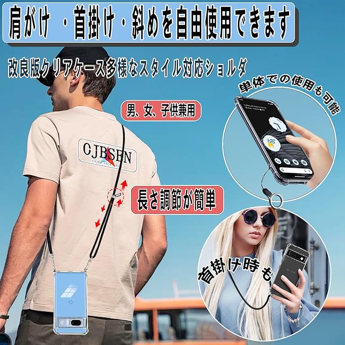 OJBSEN Google Pixel 8a ケース グーグルピクセル8a カバー [ストラップ2枚付き] 調節可能な ショルダー 肩がけ 首掛け 紐付き ストラップホール付き 薄型 透明 PC+軽量 シリコン TPUバンパー [耐衝撃 ワイヤレス充電 傷防止 全面保護 米軍MIL規格 防指紋 カメラ保護] スマホケースPixel 8a(クリア)