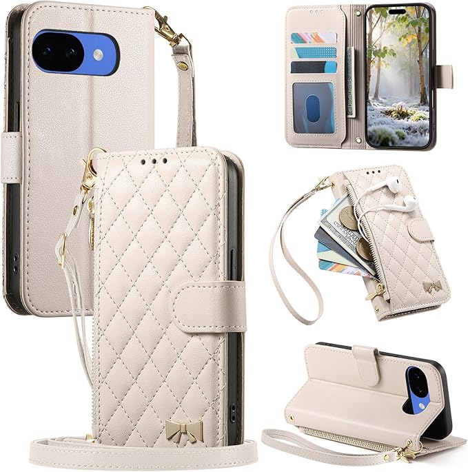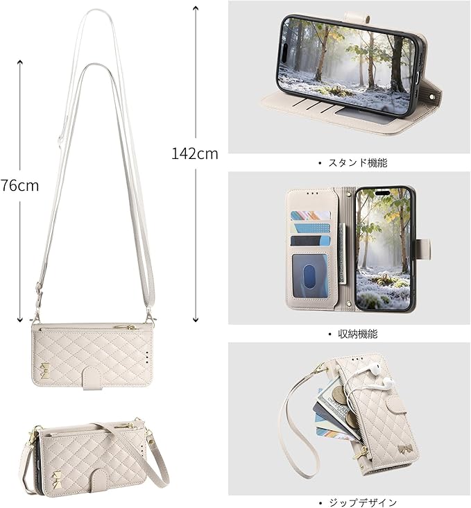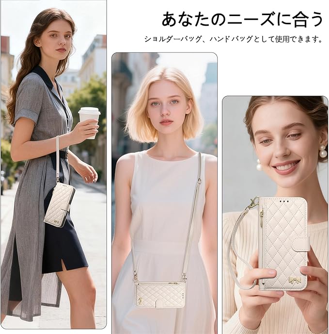 対応 Google Pixel 10A 用の ケース 手帳型 ショルダー 斜め掛け ピクセル 10a 用の スマホケース 女性 肩掛け 調節可能な pixel10a 用の 携帯ケース 落下防止 手帳型ケース スタンド機能付き 磁気閉鎖 財布型 360度保護 耐衝撃 カード収納 レザー おしゃれ 携帯カバー (ホワイト)