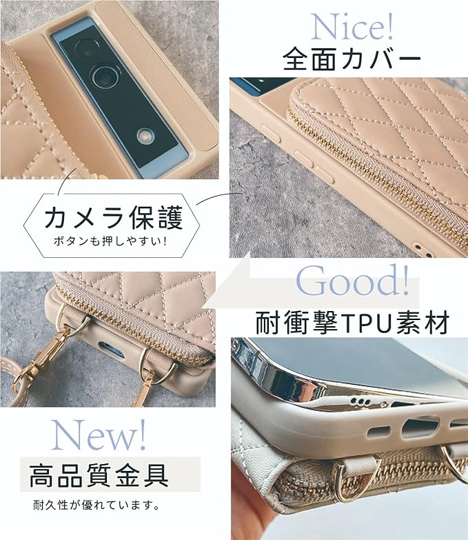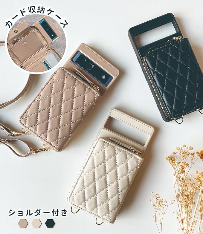 【おしゃれ googleピクセル ケース】 高品質PUレザーを採用し。キルティン製法により、ひし形のチェック柄を作って、しなやかで柔らかいタッチ感とふんわり弾力感が共存。 エレガントなゴールデントーン金具使用。リングやファスナーがキラキラと輝いて、おしゃれなアクセサリー感覚でお手元のスマホケースを彩る。 全3色展開。落ち着いた色味ながら、お洋服にも合わせやすい。ご自身用はもちろん、お友達のお誕生日プレゼント、母の日のギフトなどにもおすすめ。
