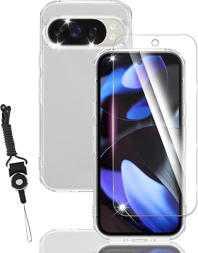 【Awubaige】For Google Pixel 10 Pro 用の ガラスフィルム+For Pixel 10 Pro 用の ケース クリア For グーグルピクセル用の フィルム 耐衝撃 硬度9H 全面保護 保護フィルム 飛散防止 クリアカバー TPU 保護ケース スマホケース 落下防止 軽量 透明 散熱加工