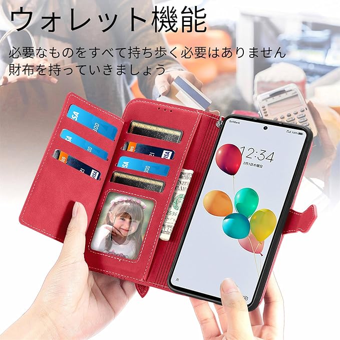 横置きスタンド機能が付いて、好きな角度で動画鑑賞や読書などを楽しめます、財布型ケースとして、名刺やカードなどを入れるポケットがつき、日常生活に便利です。