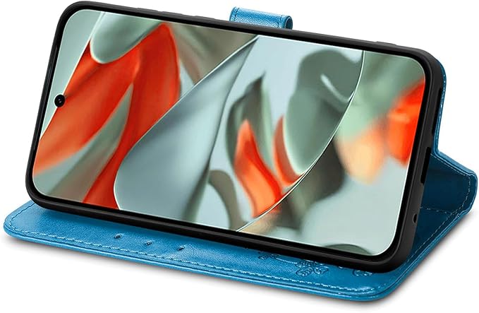 に適用するGoogle Pixel 10 Pro XL ケース 手帳型 ノートブック型携帯電話保護カバー多機能ホルスター財布ホルダーバンプパターンテクスチャ耐久性摩擦耐性ケース男性と女性に適した (四つ葉のクローバーブルー)