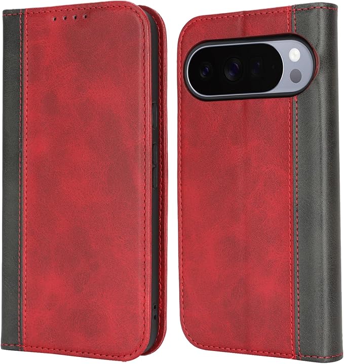 Cavor Google Pixel 10 / 10 Pro手帳型 ケース Pixel 10 ケース 手帳型 Pixel 10 Pro 携帯 カバー Pixel 10 Pro ケースカード収納 2色カバー 柔らかい材質 耐久性 内蔵マグネット携帯カバー カカード入れ スタンド機能 落ち着いた色 軽量 強磁性[選択可能な4色]-レッド+ブラック