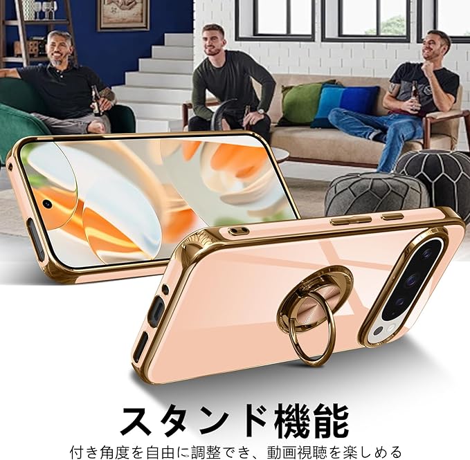 Google Pixel 9 Pro 用ケース/Google Pixel 9 用ケース リング 耐衝撃 レンズ保護 軽量 グーグル ピクセル 9/9pro 用ケース メッキ加工 ソフトケース スタンド機能 車載ホルダー対応 サラサラ触り心地 ピンク MZ85-55