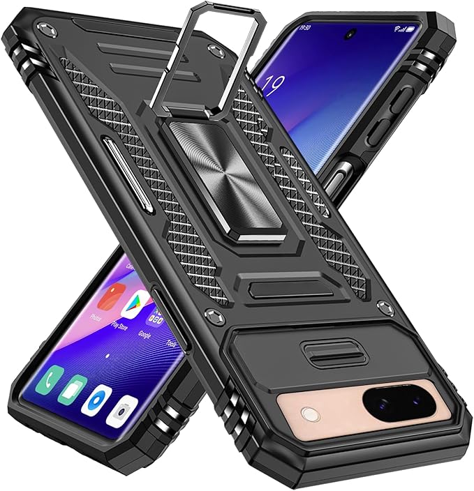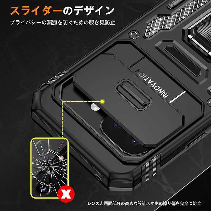 対応 Google Pixel 10A 用ケース リング付き スライド式カメラカバー 衝撃吸収 耐衝撃 一体型落下防止 スタンド機能 PC+TPU 二重構造 防塵 薄型 軽量 360度回転 ピクセル 10a 用の携帯カバー 黒 MJJ-1064-14-01
