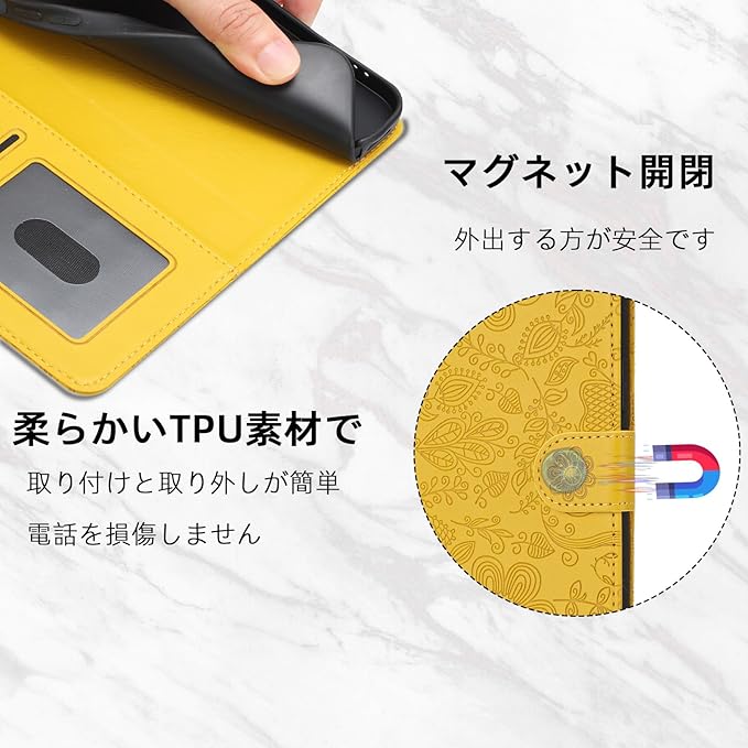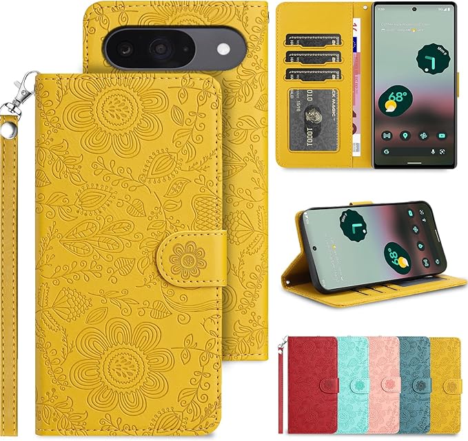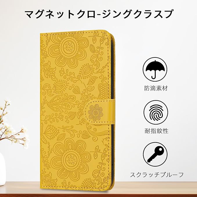 Google Pixel 9 Pro ケース 手帳型 スタンド機能 Pixel9 ケース Pixel9プロ スマホケース 手帳型 グーグルピクセル9ケース 手帳型 ぐーくるぴくせる9 携帯カバー 財布型 携帯ケースgoogleピクセル9 ピクセル9 ケース 手帳型 カード収納 Googleピクセル9 カバー 高级PUレザー ストラップ付 スマホケース 花柄 軽量 薄型 -黄色