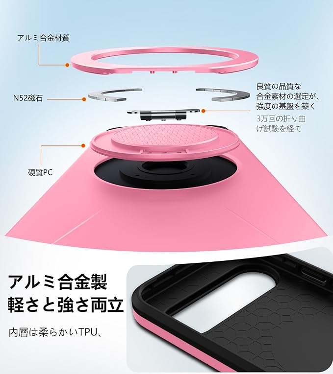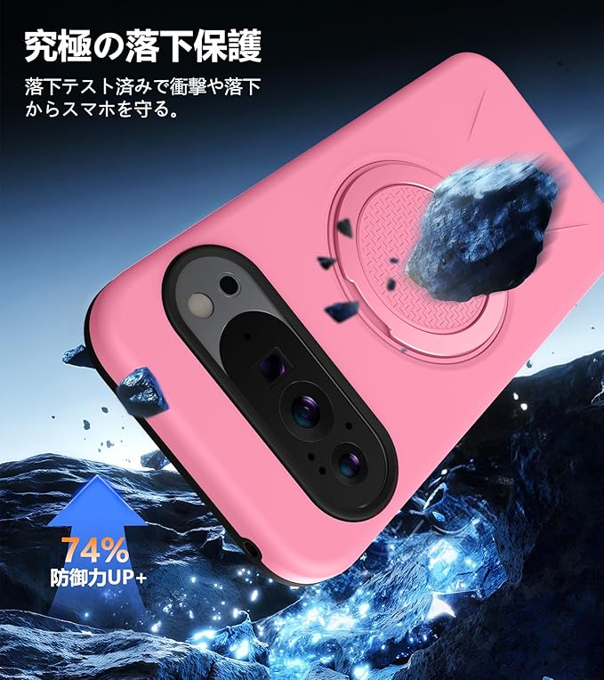 と互換性のある Google Pixel 10用の ケース Pixel 10 Pro 用の ケース Magnetic対応 スタンド付き リング付き 耐衝撃 縦横両可能 360 自由回転 TPU+PC 軽量 滑り止め 落下保護 スタンド機能 車載ホルダー対応 ピクセル 10/ 10 プロ 携帯カバー ピンク R-KP-GP10P-05