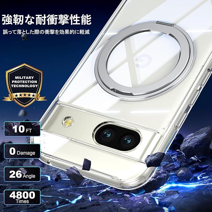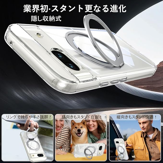 Pixel 8a 用 ケース Magsafe対応 Google ピクセル8a カバー 360 回転スタンド Uovon スマホケース 携帯ケース ワイヤレス充電 車載ホルダー 対応 ストラップ穴付き 透明 指紋防止 黄变防止 ・ クリア