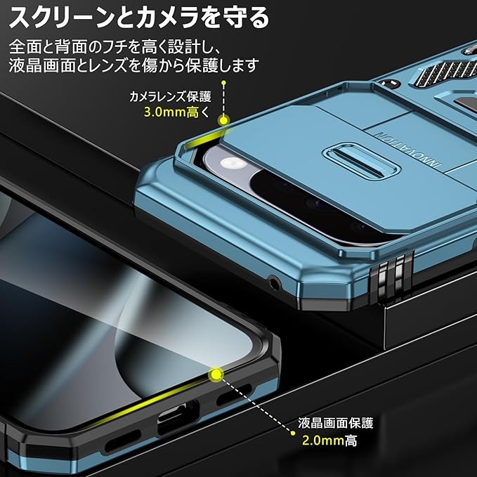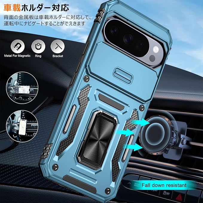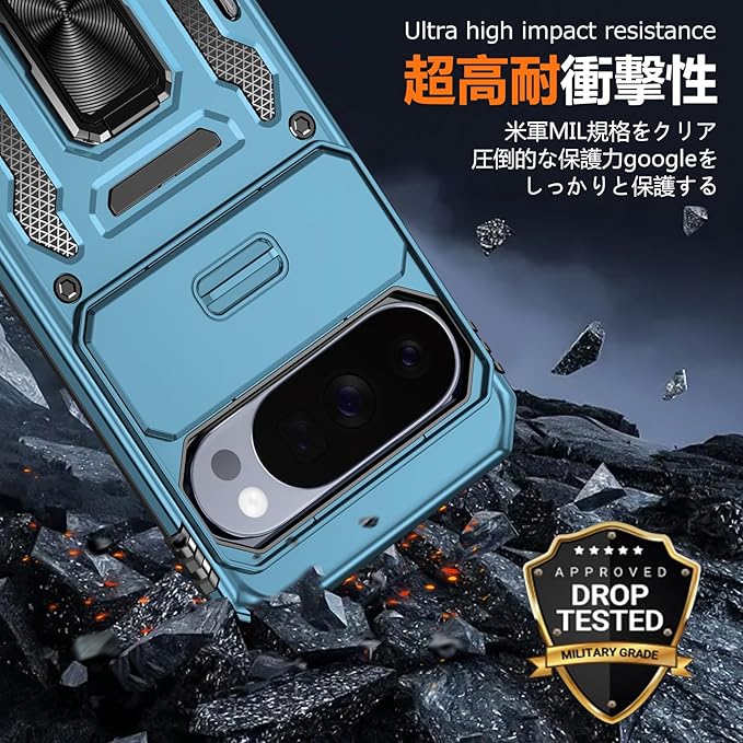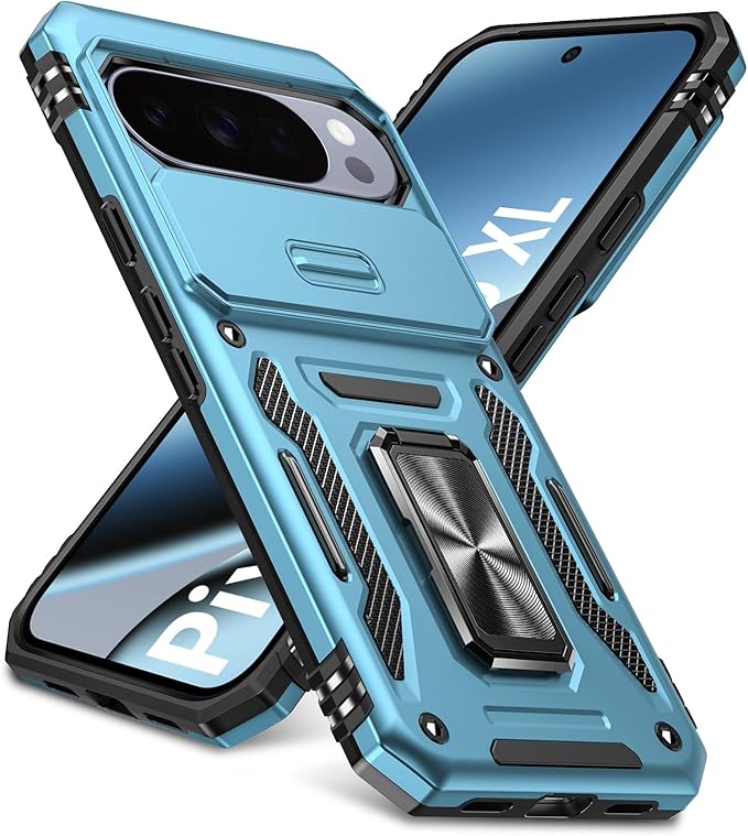 PNEWQNE 対応Google Pixel 10 Pro XL 用のケース リング付き 衝撃吸収 耐衝撃 スタンド機能 米軍MIL規格 グーグル ピクセル10 pro xl 用のケース 全面保護 360 回転 滑り落ちにくい 人気 おしゃれ 携帯カバー ライトブルー WY100-35