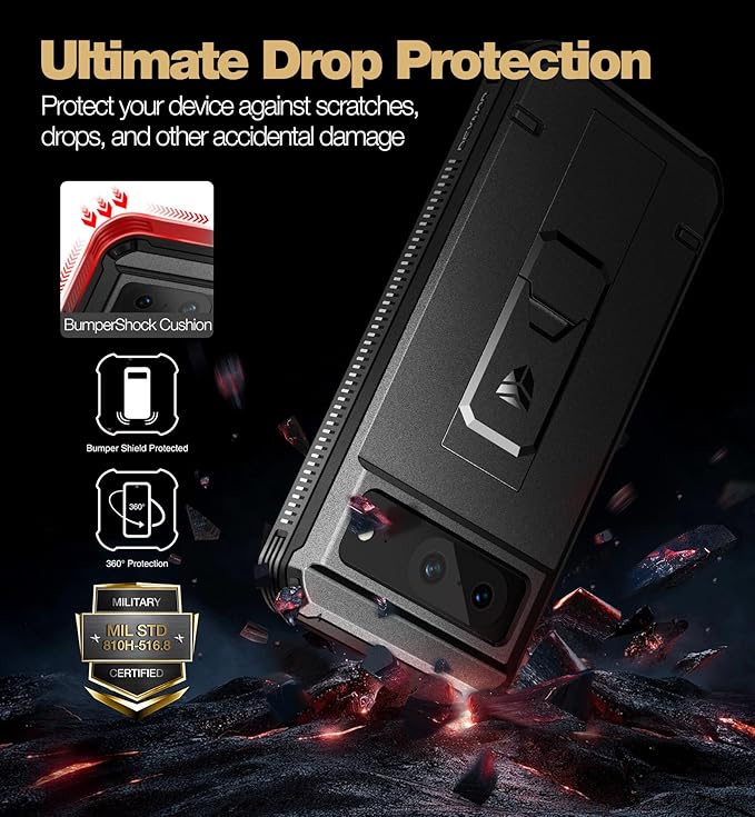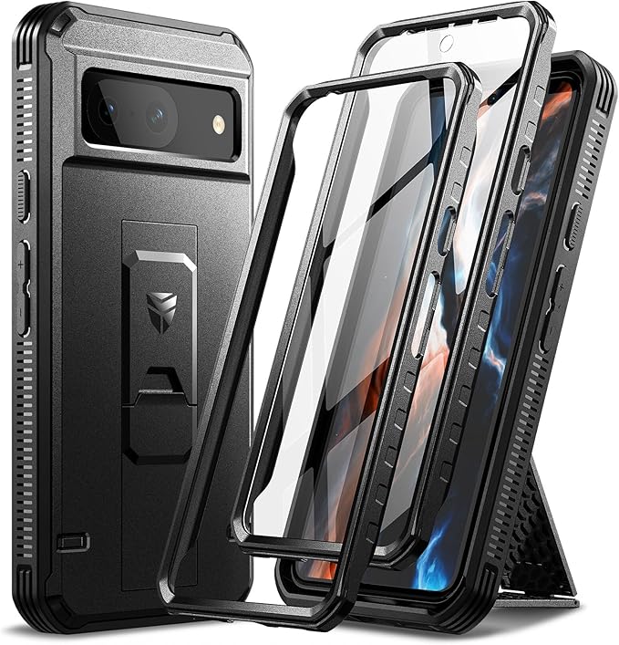Dexnor Google Pixel 8用 全面保護ケース【二重フロントフレーム&キックスタンド】バンパーショック技術採用 耐落下 耐衝撃 頑丈バンパーケース(ブラック)