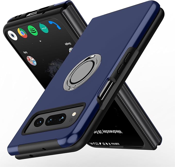適合 Google Pixel Fold 用のケース リング付き 耐衝撃 衝撃吸収 tpu 薄型 擦り傷防止 薄型 シリコン スタンド機能 車載ホルダー対応 二重構造 PC バンパー 対応 ピクセル Fold 用 スマホケース 米軍MIL規格 全面保護 360 回転 おしゃれ 人気 携帯カバー(青)Q44-YSZH-Pixel-Fold-QIN
