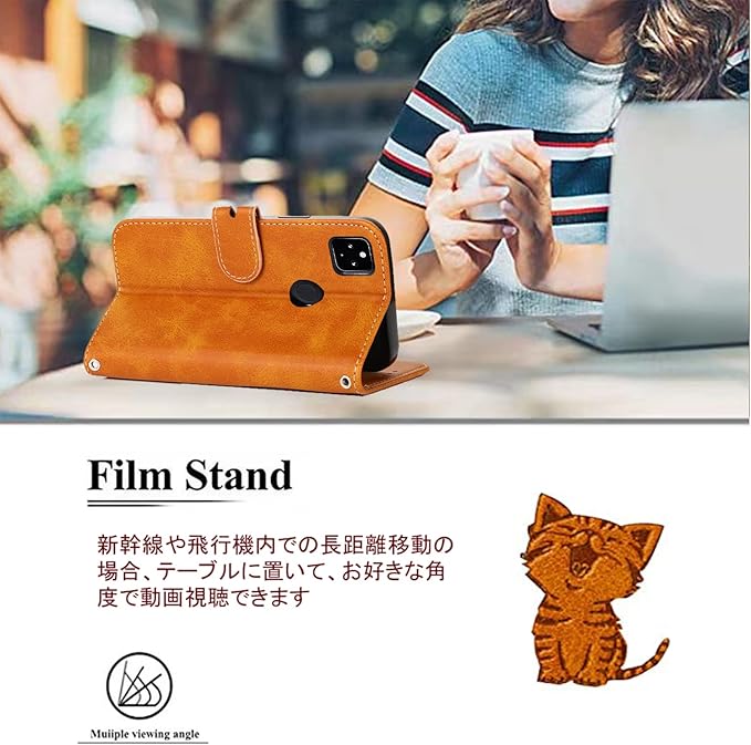 Google Pixel 4a 5G ケース 手帳型 グーグル Pixel 4a 5Gケース ピクセル 4a 5G 手帳型ケース 財布型 カバー 可愛い キャラクター スマイル 笑顔猫ちゃん スマホケース 保護ケース 猫柄 動物 アニマル どうぶつ 柄 携帯カバー ねこ ネコ PUレザー ストラップ付き カード収納 ベルトマグネット スタンド機能 かわいい 薄型 防水 ノート型 耐衝撃 男女兼用 人気 黄褐色 (Google Pixel 4a 5G 対応) ライトブラウン