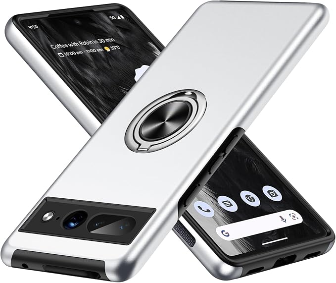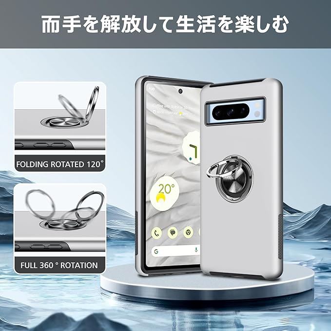 Tgaoleyd Google Pixel 7 Pro 用ケース リング付き 耐衝撃 tpu フルプロテクトデザイン スマホケース スタンド機能 全面保護 擦り傷防止 落下防止 米軍MIL規格 車載ホルダー対応 取り出し易い グーグル ピクセル 7 Pro 用カバー オシャレ 人気 携帯カバー 銀 DA08-65