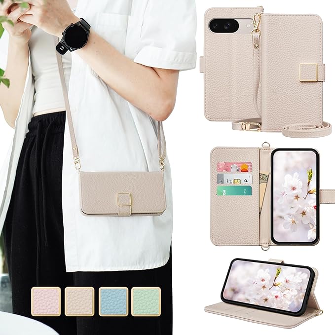 For Google Pixel 9/Pixel 9 Pro ケース 手帳型 おしゃれ ショルダー グーグル ピクセル 9 手帳型 ケース かわいい ストラップ 人気 シンプル ピクセル9pro 携帯ケース 女性 財布型 軽量 薄型 耐衝撃 レディース スマホケース Pixel9 カバー カード収納 スタンド機能 横置 マグネット式 高級PU 肌感レザー 贈り物 アプリコット