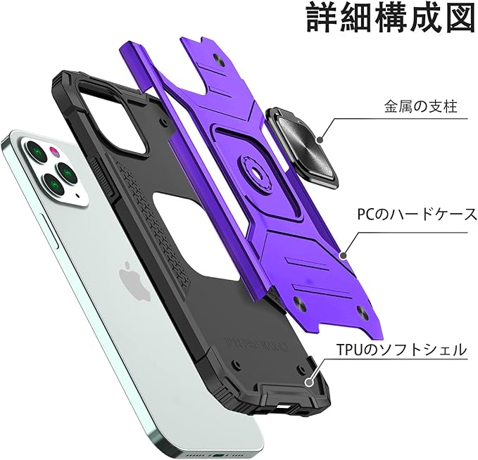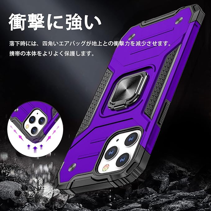 Google Pixel 7 Pro ケース リング付き 米国軍事MIL標準取得 耐衝撃 落下防止 スタンド機能 PC+TPU二重構造 防塵 薄型 軽量 一体型 360度回転 変形防止 全面保護カバー Google Pixel 7 Pro ケース (パープル) MJJ-1051-65-07